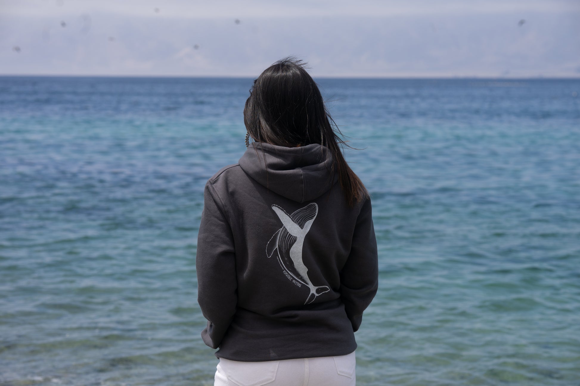 Polerón 80% algodón orgánico y 20 % poliéster reciclado de la especie Ballena Jorobada Megaptera novaeangliae.