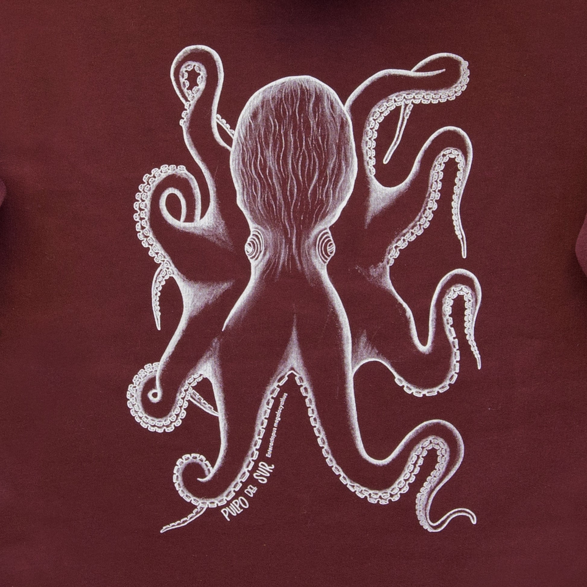 Polerón 80% algodón orgánico y 20 % poliéster reciclado de Pulpo del Sur Enteroctopus megalocyathus.