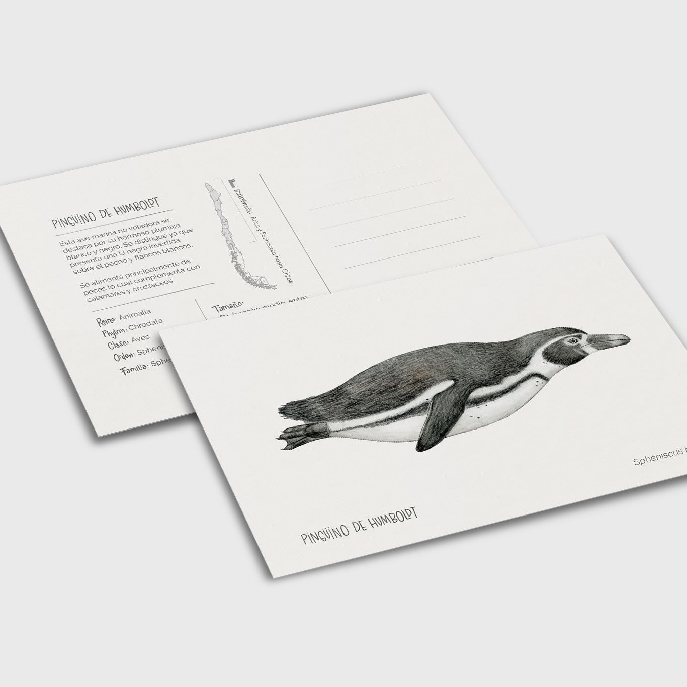 Set de postales ilustradas, perfectas como recuerdo, regalo o para enmarcar. Cada postal trae la imagen de la especie y en su reverso la descripción de esta.